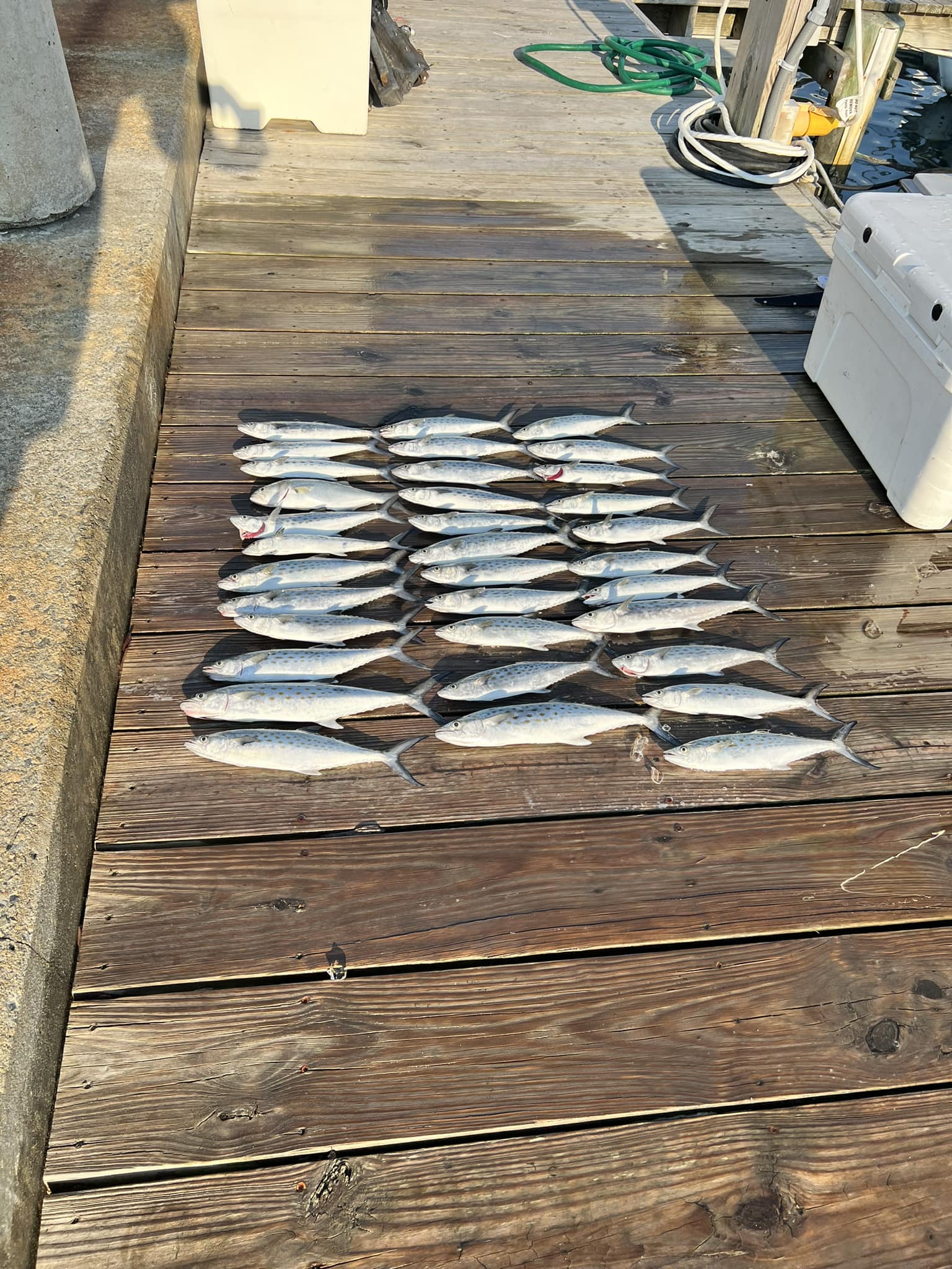 Mackerel fishing has beeen good! The Albacore and Kings have been making an appearance as well, perfect for our 4hr trips. Let’s go keep that fish fry alive! Cold air inside or stay outside in the action Booking now! 252-732-1690 Prop-Wash Charters